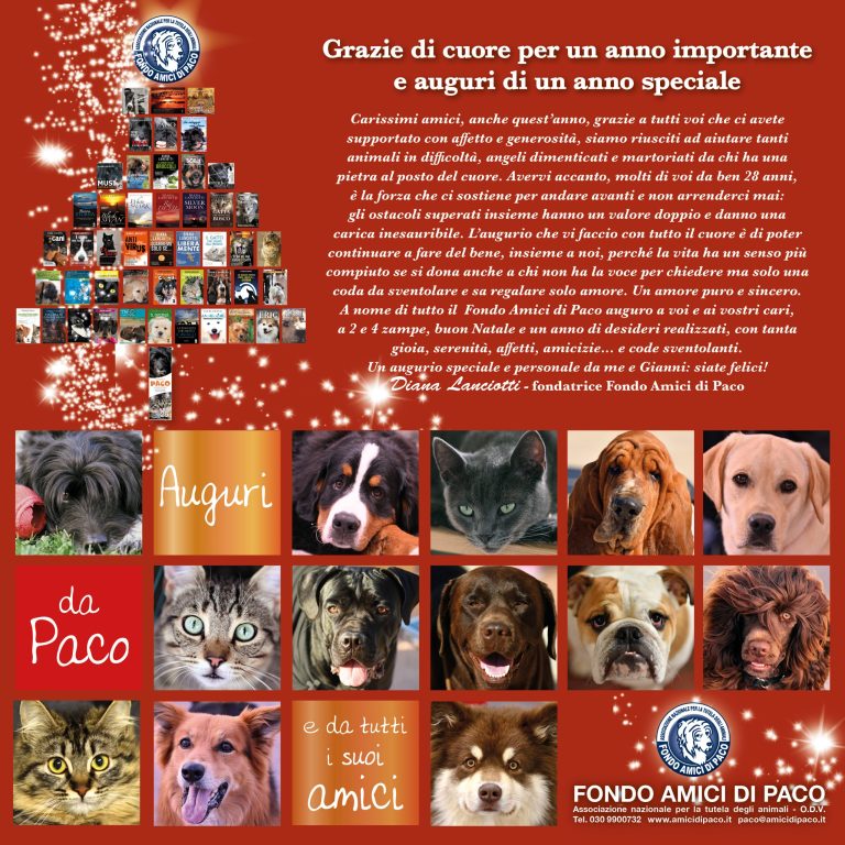 Grazie di cuore per un anno importante e auguri di un anno speciale Carissimi amici, anche quest’anno, grazie a tutti voi che ci avete supportato con affetto e generosità, siamo riusciti ad aiutare tanti animali in difficoltà, angeli dimenticati da chi ha una pietra al posto del cuore. Avervi accanto, molti di voi…