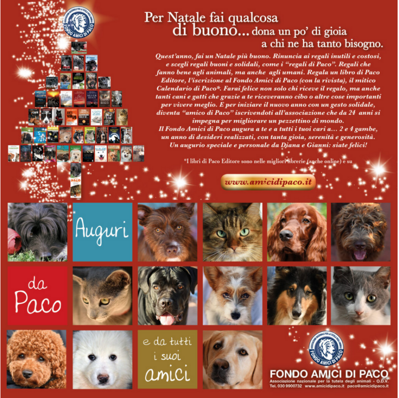 Grazie di cuore per un anno importante e auguri di un anno speciale Carissimi amici, anche quest’anno, grazie a tutti voi che ci avete supportato con affetto e generosità, siamo riusciti ad aiutare tanti animali in difficoltà, angeli dimenticati da chi ha una pietra al posto del cuore. Avervi accanto, molti di voi…
