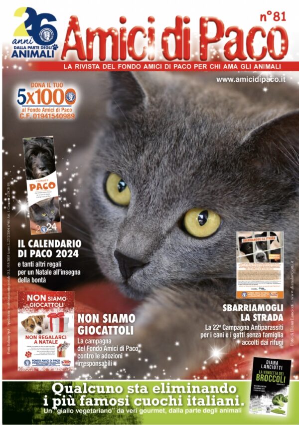 Senza scordare la solidarietà verso i nostri simili, anche quest’anno possiamo scegliere i “Regali di Paco” per aiutare tanti cani e gatti in difficoltà. Come il mitico Calendario di Paco o i libri di Paco Editore, il cui ricavato è devoluto al Fondo Amici di Paco. Regalarli, farseli regalare è un gesto di generosità verso…